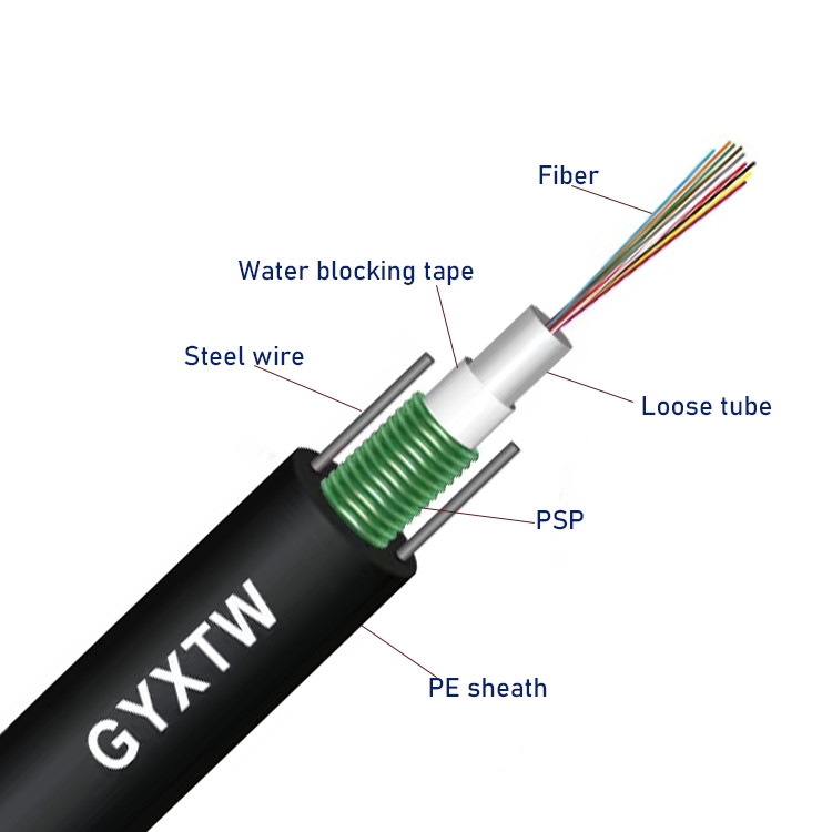 250μm lif, yüksek modül plastikten yapılmış gevşek bir tüpün içine yerleştirilir. Tüpler suya dayanıklı bir doldurma bileşiği ile doldurulur. Tüp PSP katmanı ile boyuna sarılır.PSP ve gevşek boru arasında kablo kompakt ve su geçirmez tutmak için su engelleme malzemesi uygulanır. İki paralel çelik tel çelik bantın iki tarafına yerleştirilir. Paralel çelik teller iki taraf bantına yerleştirilir. Kablo bir polietilen (PE) tabaka ile tamamlanır.