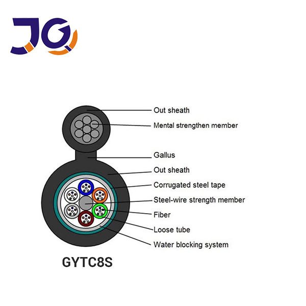 GYTC8Sdışarıda kullanılmak üzere tasarlanmış kendi kendini taşıyan bir hava fiber optik kablosudur. Döşeli gevşek boru yapısı ile 1 ila 144 fiber'i destekler. Kablo bir haberci telinden, PE dış kablosundan,Fiber ve jel ile dolu gevşek tüpler, ve ezilme ve çarpma direnci için dalgalanmış çelik bant zırhı.Hava tesisatları için ideal, GYTC8S hem uzun mesafe iletim hem de LAN iletişim ağları için uygundur.