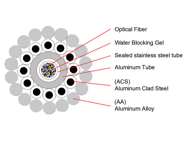 Örgülü Optik Toprak Teli (OPGW), iki veya üç kat alüminyum kaplı çelik teller (ACS) veya ACS ve alüminyum alaşımlı tellerden oluşan bir karışımla üretilir. Bu tasarım, enerji iletim hatlarının ortak yapısal ve mekanik taleplerini karşılamak üzere optimize edilmiştir.